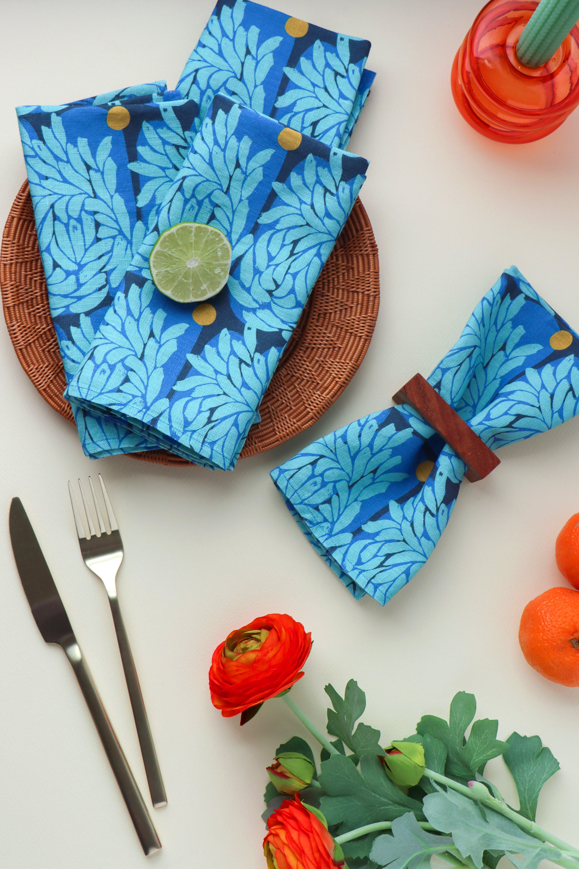 Burst linen napkin, blue